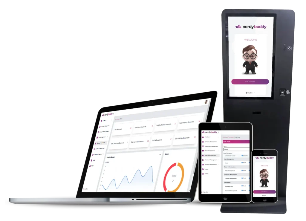 Nerdy Buddy is accessible across multiple platforms, offering users a seamless experience whether they’re on the web, using our mobile app (iOS and Android), or interacting with our advanced AI-powered kiosk equipped with facial recognition for secure, on-site access.
